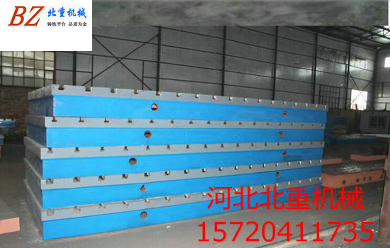 T型槽平臺設(shè)置的加強筋,能夠提高鑄鐵模的結(jié)構(gòu)強度,利于防止平板因內(nèi)應(yīng)力太大而開裂,由于T型槽平臺采用了鑄鋼材料,增強了鑄鐵??篃崦浝淇s的強度,并且即使發(fā)生開裂,也易對其裂縫進行焊接修補,從而能夠重復(fù)使用,大大延伸了T型槽平臺使用壽命。