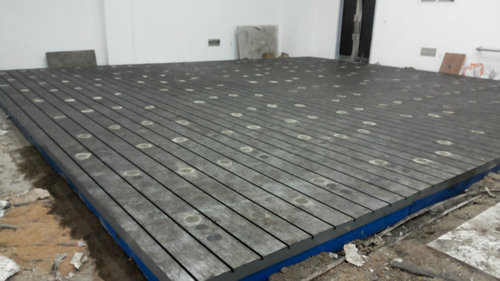 為沈陽(yáng)客戶生產(chǎn)的設(shè)備運(yùn)行試驗(yàn)平臺(tái),T型槽平臺(tái),有2000*4000mmT型槽平臺(tái)拼接組成.采用頂絲和地腳螺栓的調(diào)整固定方式.